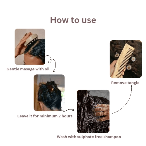 Massage gently into scalp using fingertips. Apply from root to tip.